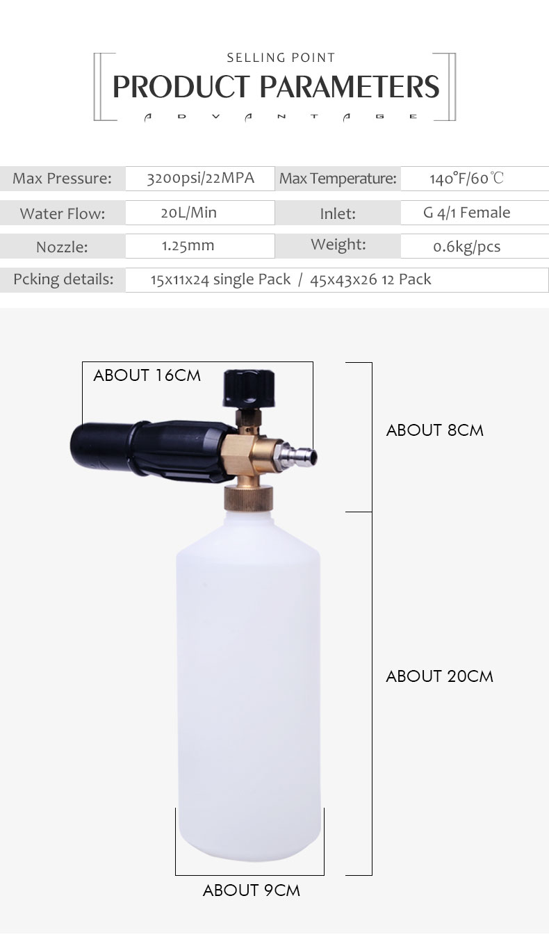 | Name: | Foam Cannon Car Wash Tool | Material: | Polyethylene, Brass, Plastic |