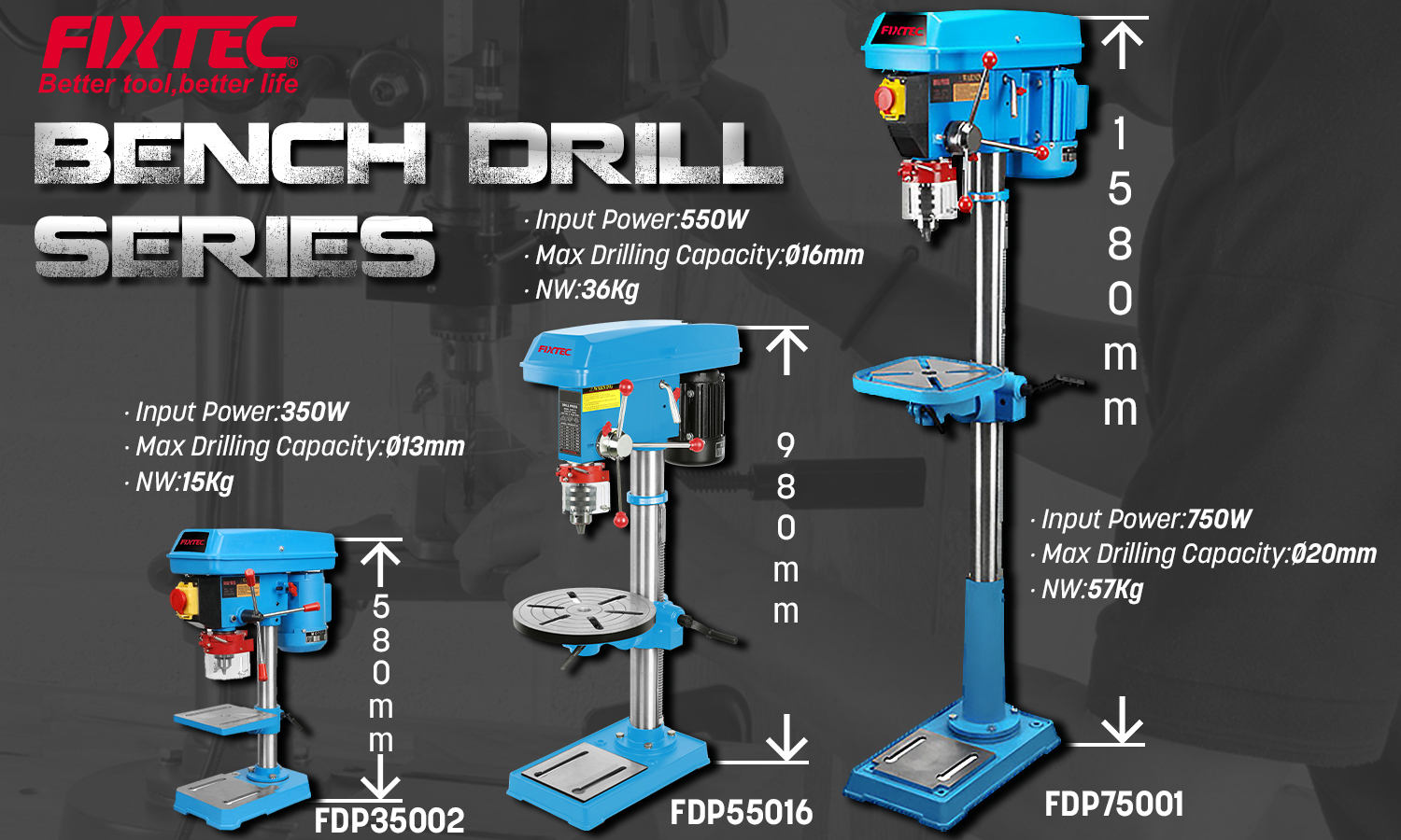 FIXTEC Bench Drill 13mm Variable Speed Drill for Woodworking | ||||||