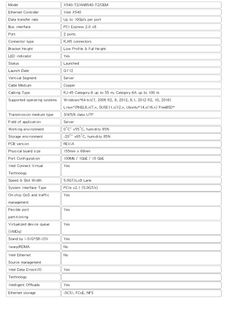 | chipset: | Chipset Intel X540 | Single package size: | 30X20X10 cm |
