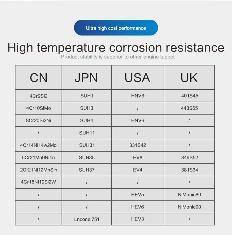 | Packaging Details: | Topology brand package, neutral package, customized | Material: | 4Cr9Si2, 4Cr10SiMo, 8Cr20Si2Ni, 4Cr14Ni14w2Mo, 5Cr21Mn9Ni4n, 2Cr21Ni12MnSin |