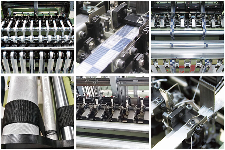 It is a Bonas type needling machine. The machine can produce different types of elastic and non-elastic narrow belts, from the smallest width. 2mm to 300mm, thickness not more than 3.8mm, line from 2 lines to 16 lines.