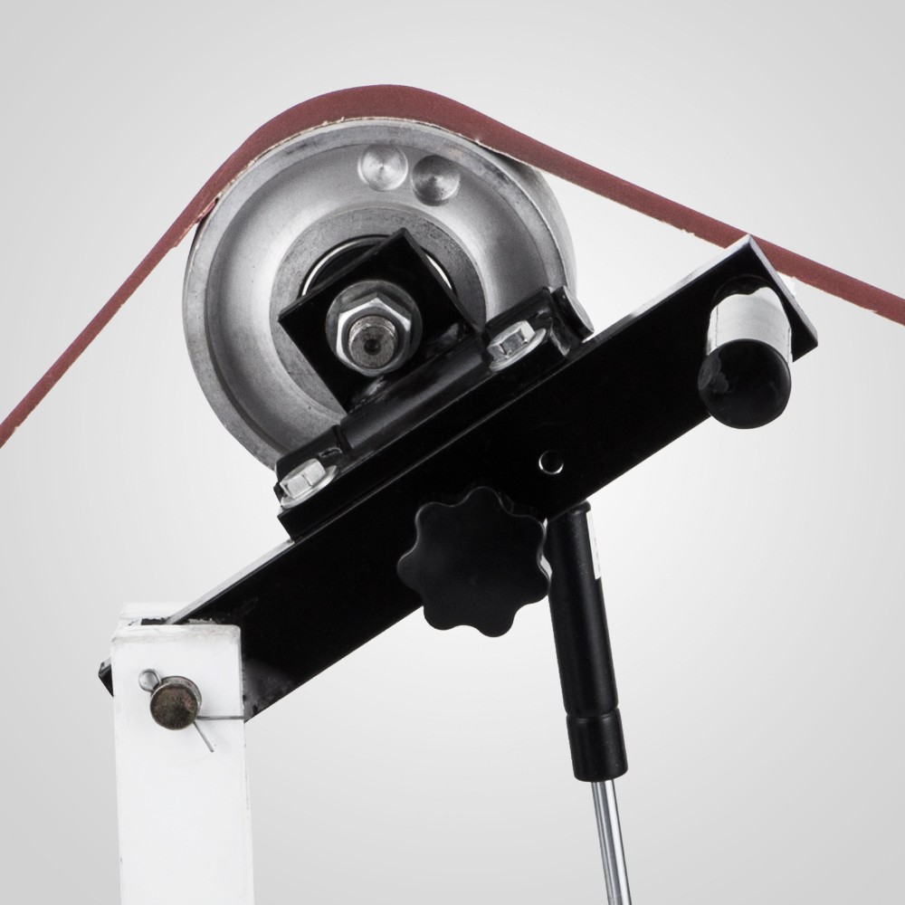 First, you need to insert the movable rod of the grinding wheel, hang on the belt and compress the spring.
