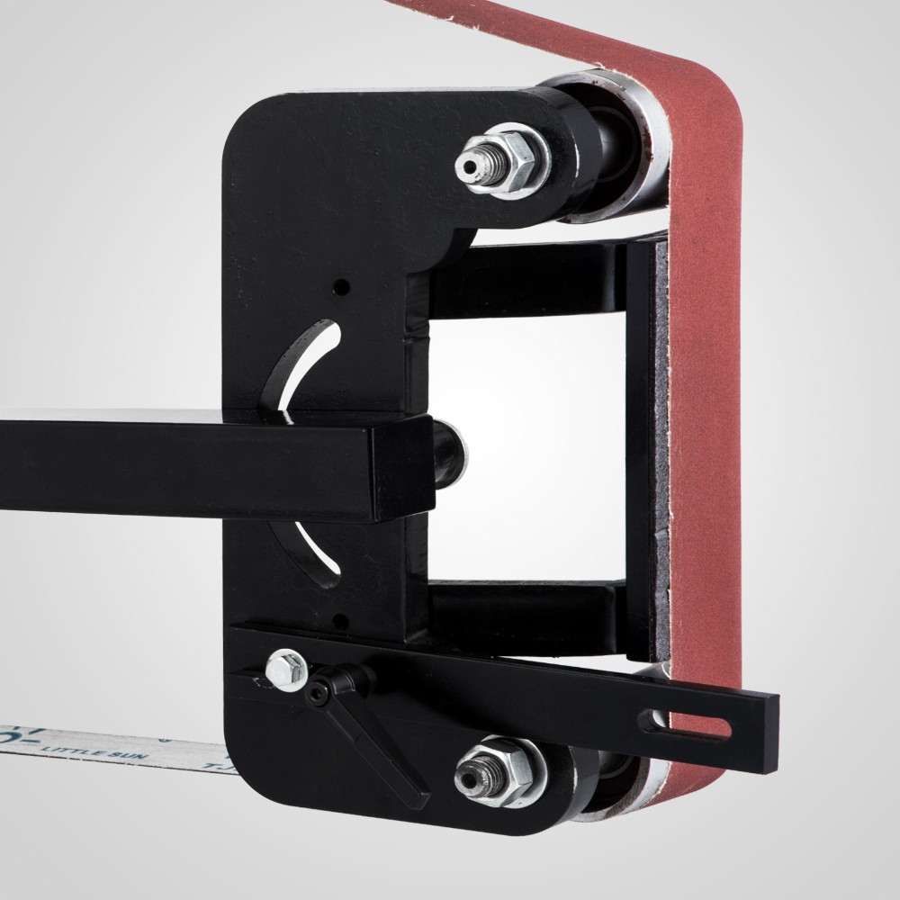 This new variable speed belt grinder is the ideal machine for cutting, profiling, handle and finishing, satin or mirror finishing. It is all steel construction with all steel frame welded at all joints which makes this sander very strong and precise belt control. Also, it runs smoothly and the tracking is very stable, so it doesn't make a lot of noise. The drive converts one phase to three for better control when doing detail work and reduces heat after blade heat treatment. This grinder has top-of-the-line idlers, motors and drives.