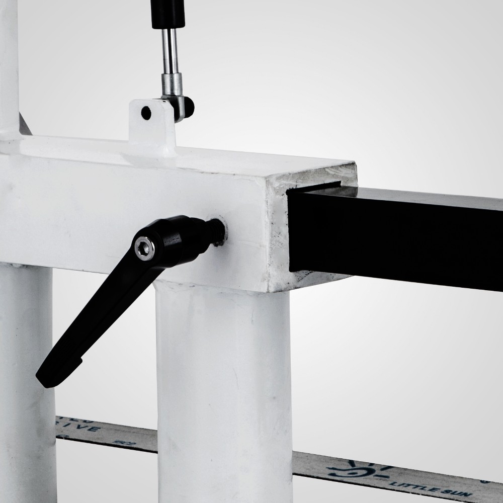 Easy to change platen or wheels/accessories Quick release tool arm and tool holder without tools,