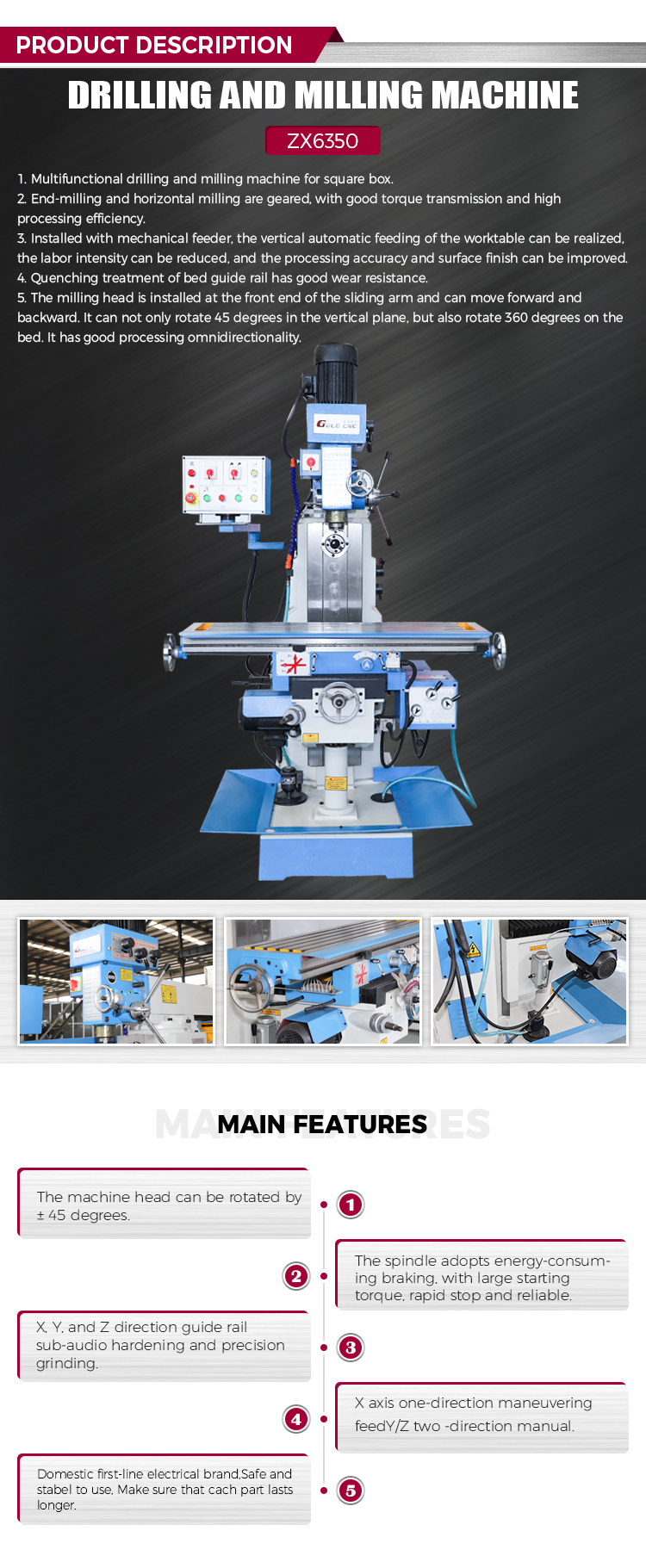| product name: | ZX6350 milling and drilling machine vertical milling machine | Spindle taper: | MT4,MT4 |