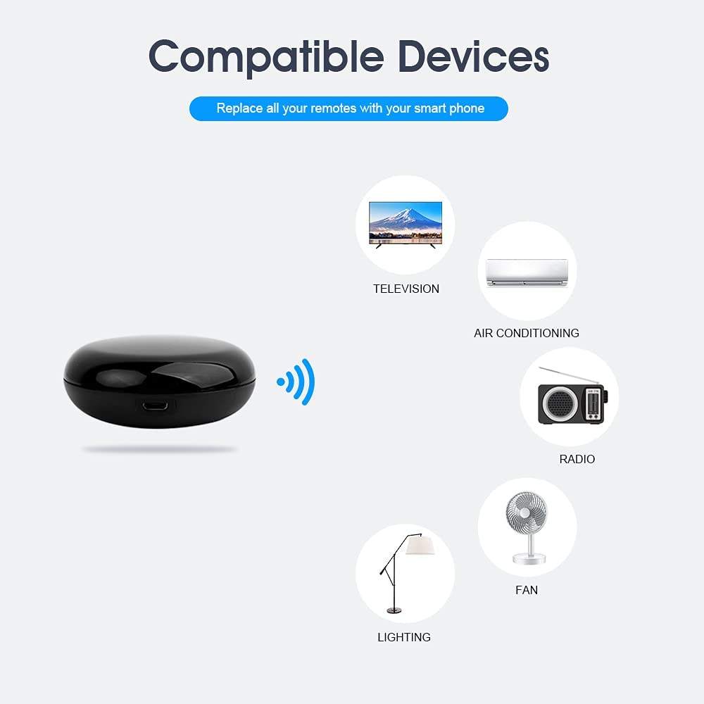 【Compatibility】Support 90,000+ infrared control devices, including your air conditioner, TV, set-top box, DVD, fan, infrared motorized curtains, etc. With a huge infrared database, covering 98% of infrared remote control functions, it can automatically update in the cloud and add new update devices.