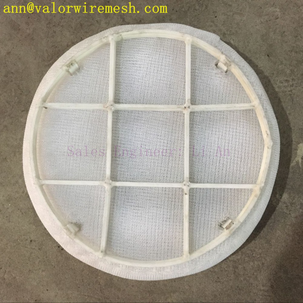 This is a wave type mist eliminator. We are familiar with its capacity is much higher than ordinary flat demister with the same mesh density and thickness. With PP mesh, the mist eliminator is difficult to shape. With the help of ss grid, we can achieve it more easily.