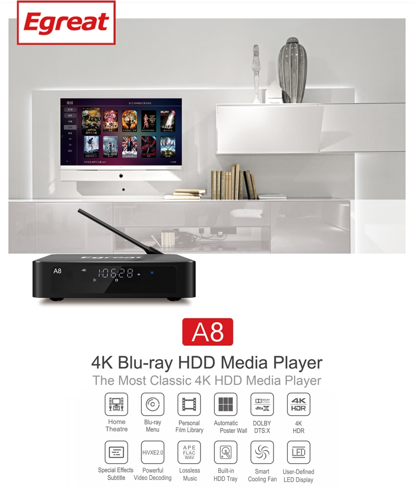 2019 Hot Selling Egreat A8 4K Blu-ray 3.5" HDD Media Player