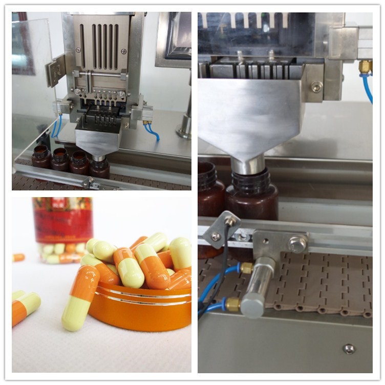 The equipment is a patented capsule intelligent high-precision automatic capsule counting machine. The model counting device can automatically realize the filling work of any number (odd, even, precise number of pieces). Small size, low noise and stable operation, it is an ideal choice for small and medium-sized pharmaceutical companies, health care product factories, hospital preparation rooms, and automatic filling equipment for several grains.