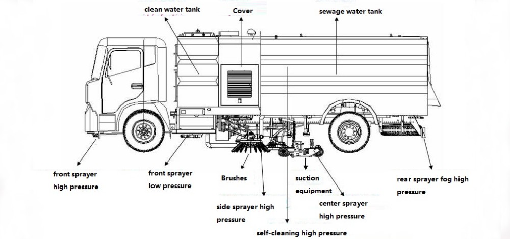 2. The CLW 8-10CBM road sweeper has 4 sweeping brushes in the middle and rear nozzles. There are 3 operation modes for scanning the disk: full scan, front left or right front scan. It is also able to automatically avoid obstacles.