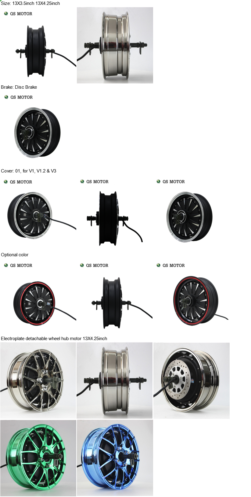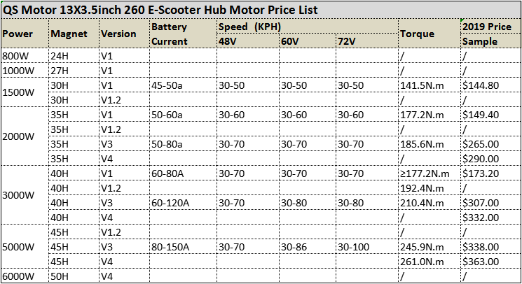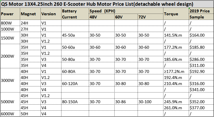 QS Motor 13inch 800W-6000W 260 E-scooter/Motorcycle List
