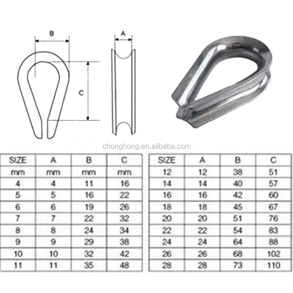 AISI304/316 stainless steel cable thimble European standard high polished wire rope thimble