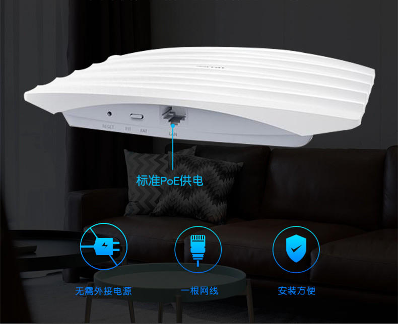 - Multi-scenario application, high-quality WiFi coverage - 300mbps wireless, large area wireless coverage, more access terminals, to meet wide-area wireless network coverage - Built-in directional antenna, improve the signal quality of the coverage area, can concentrate wireless energy on the ceiling AP On the front, improve the wireless signal quality in the AP coverage area. - Ingeniously integrated into various environments, the network cable port is hidden design, cleverly hides the network cable, beautiful and generous, and better adapts to various environments