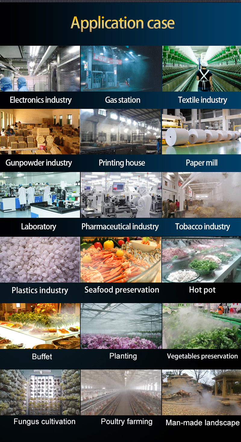5. Small mist (diameter <5um), high humidification efficiency, widely used in various industries and air disinfection.