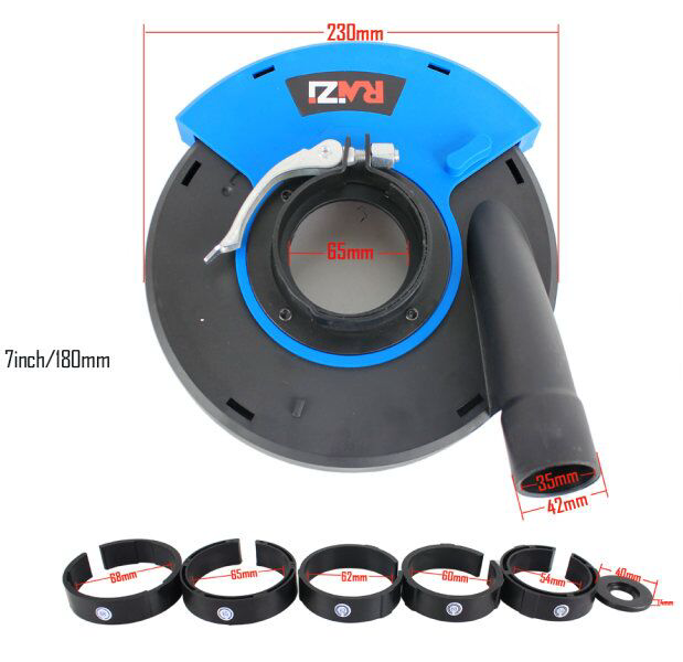 The RAIZI 5" Angle Grinder Dust Collector is designed for cleaning, smoothing out spots, removing epoxy, polyurethane, paint and other coatings, smoothing uneven floor surfaces, and cleaning glue and mastic after removing floor coverings.