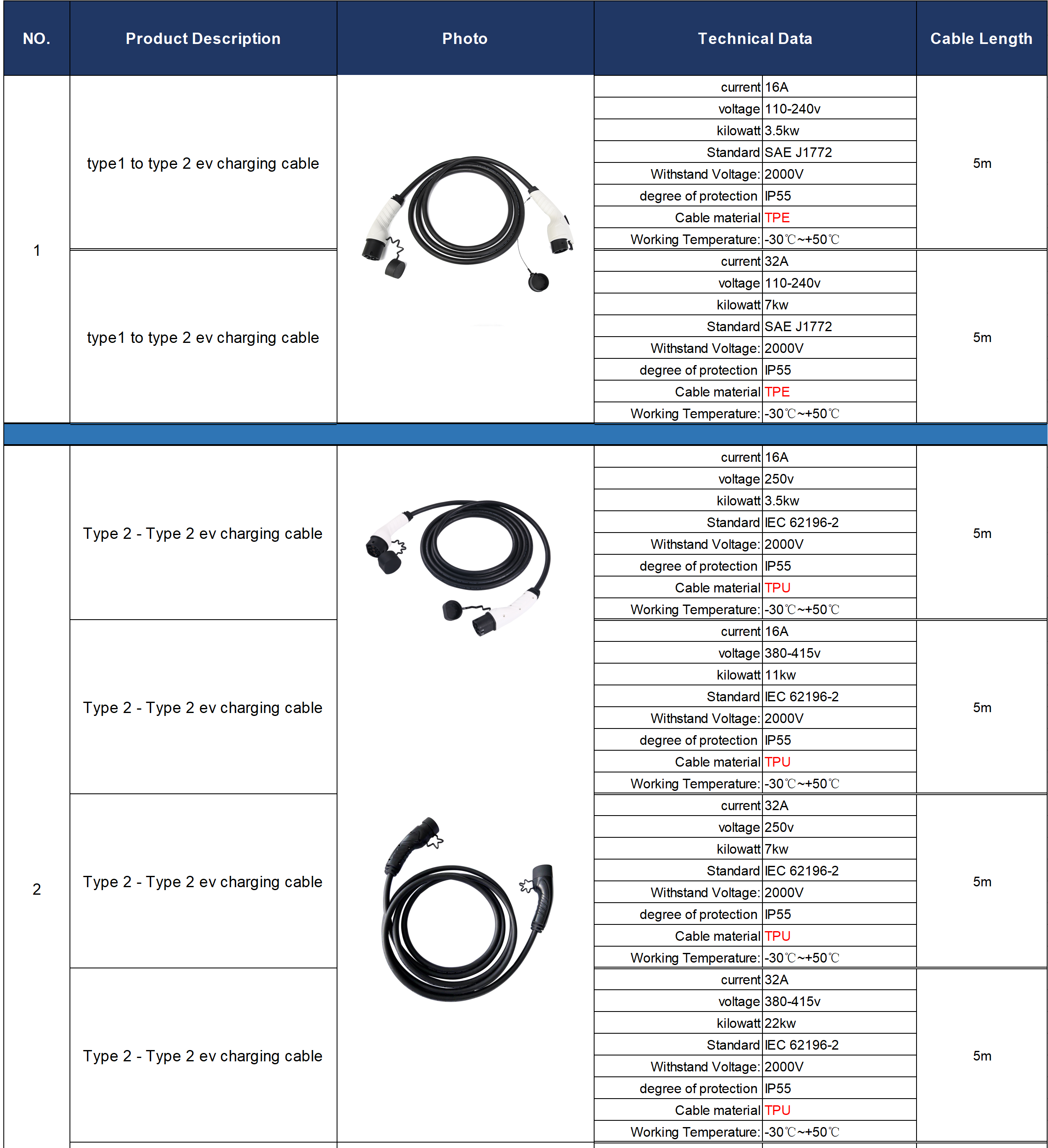 | model: | Type 2 to Type 2 | brand: | overtake |