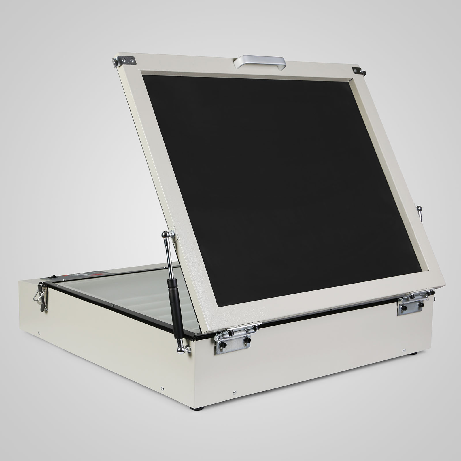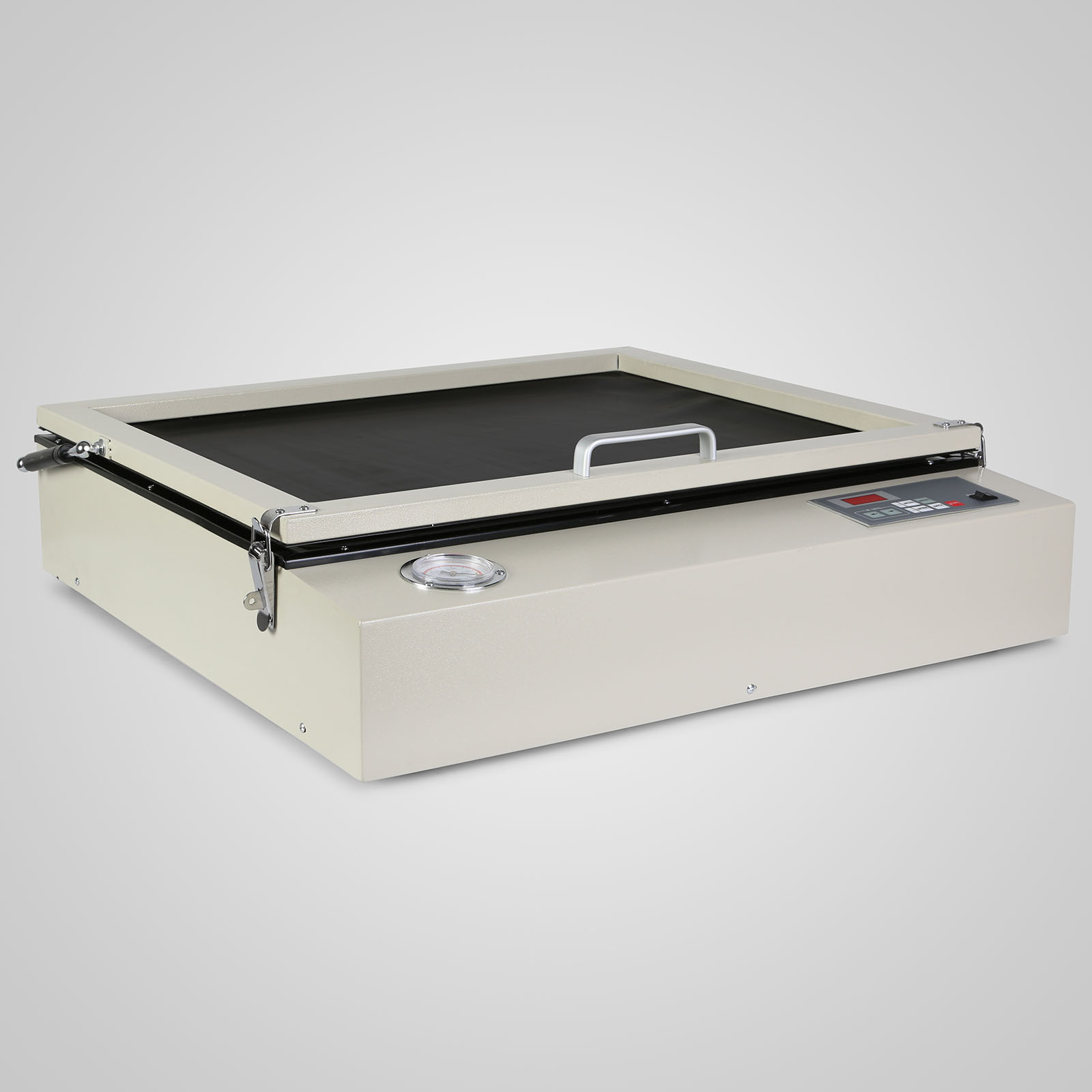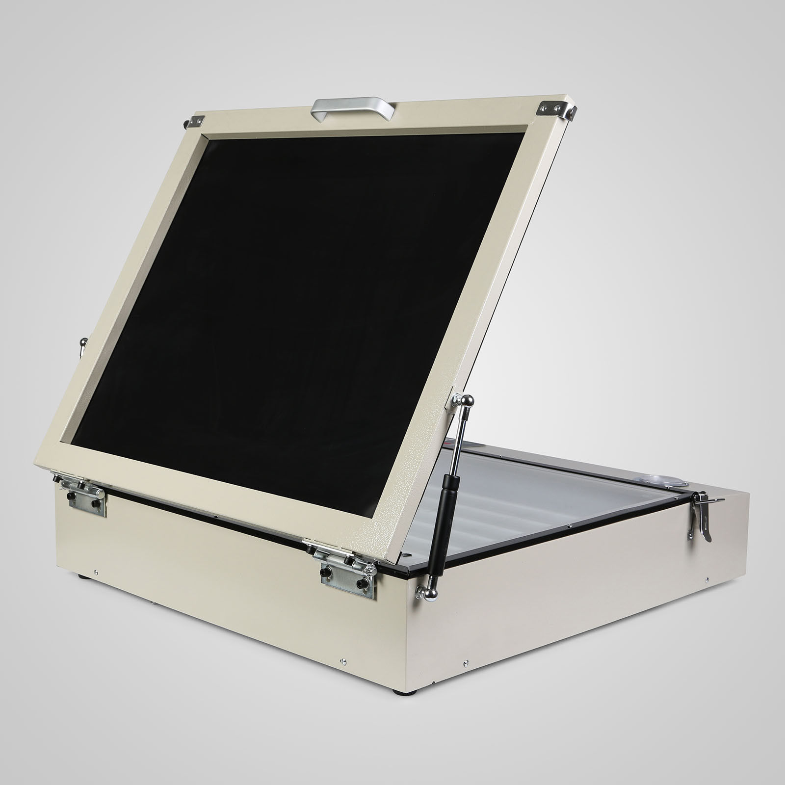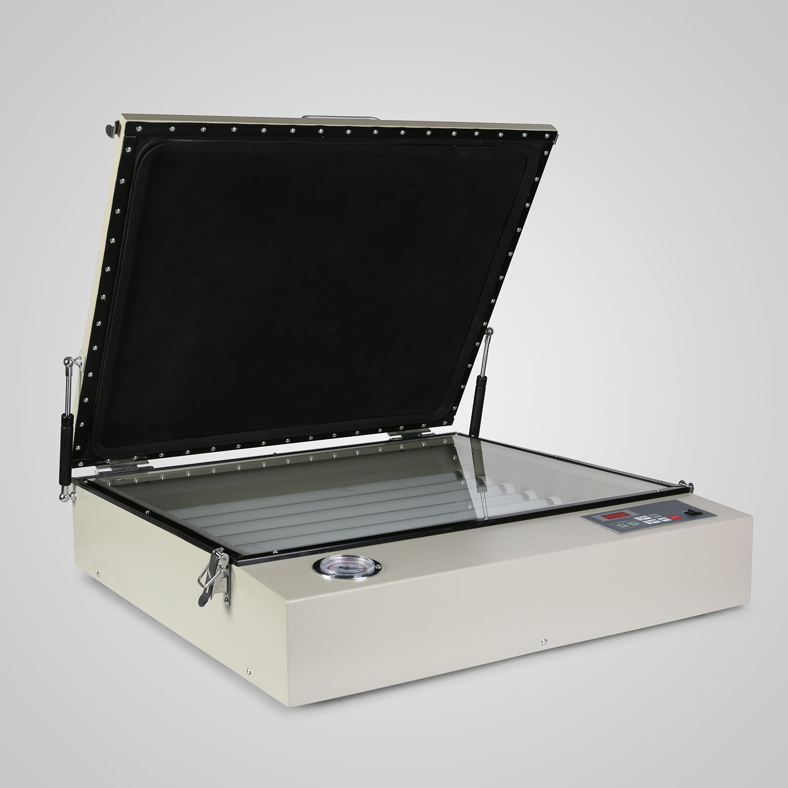 Our precision vacuum UV exposure units are equipped with special UV lamps and auxiliary vacuum suction. After placing the screen and the printed clear film on the glass, close the lid, set the desired vacuum and exposure time and let it work, then make the screen and clear film stick tightly to the glass by vacuuming air The chamer that appears in the rubber blanket. After the set time is up, it will automatically deflate and the exposure will end. Please cut off the power.