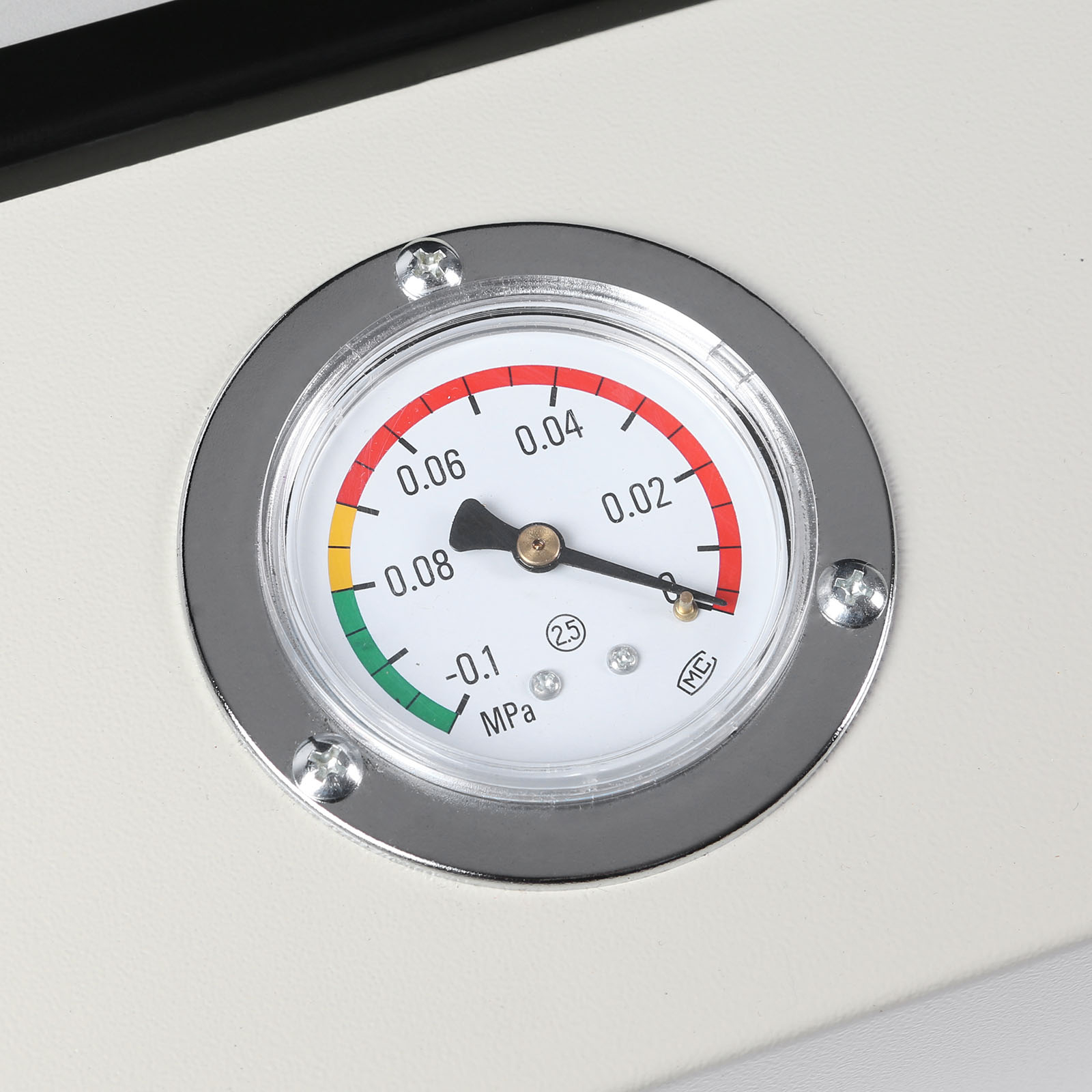 2) Press "+" or "-" in the "Time Control" area to set the vacuuming time as required. (First-time users, please put an empty sieve in the middle of the rubber inner cavity, just set the test for 40 seconds, if the needle of the vacuum gauge can reach or pass the middle of the green area, that's ok. If not, please extend the time to retest, until the requirements are met.)