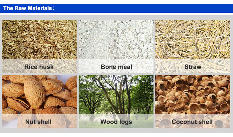 | raw materials | Wood flour, rice husk, sawdust, wood, coconut shell, etc. |