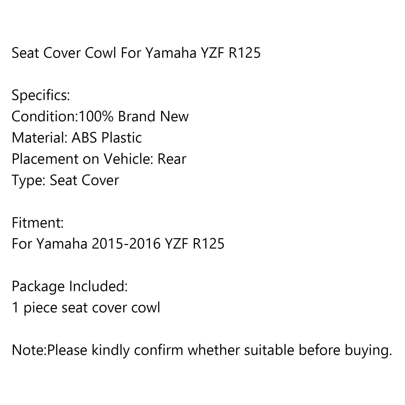 | Single package size: | 42X27X14 cm | furnish: | Fits Yamaha 2015-2016 YZF R125 |