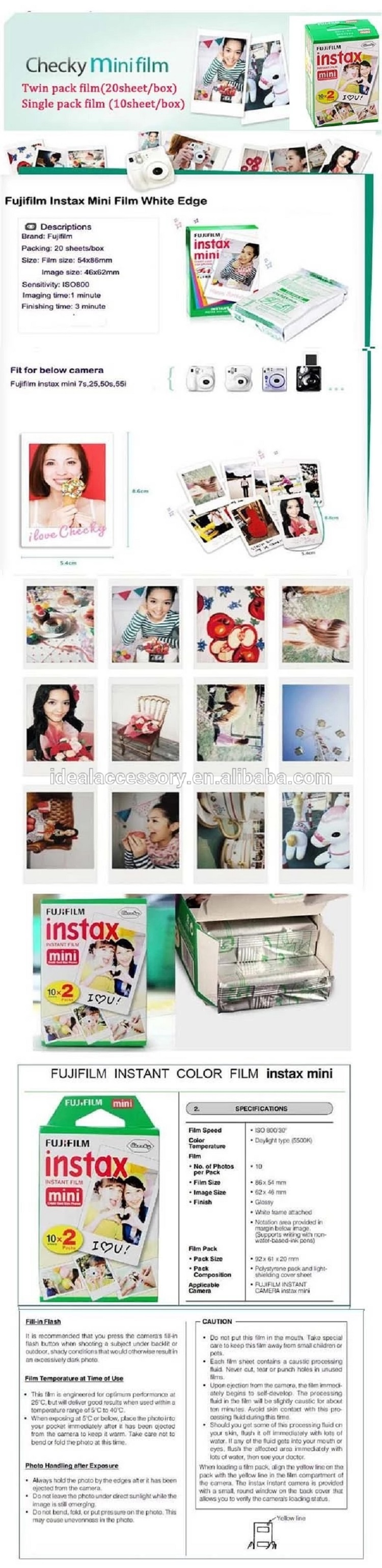 | compatible: | fujifilm camera Mini7s, Mini8, Mini 25, Mini 90, SP-1 shared printer, etc. | Certification: | other |