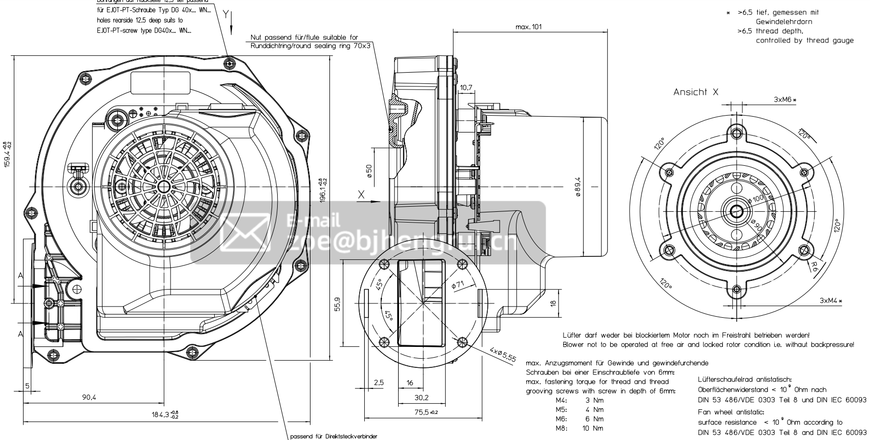 | speed: | 6000 rpm | air flow: | 130 cubic meters/hour |