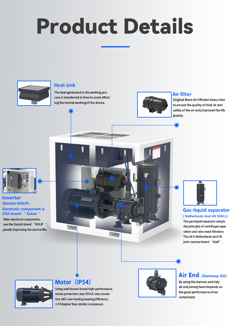 | application: | Air | Packaging Details: | Wooden box for electric silent oil free screw type 7.5kw 15kw 22kw 37kw 75kw air compressor 8bar 10bar 13bar industrial CE |