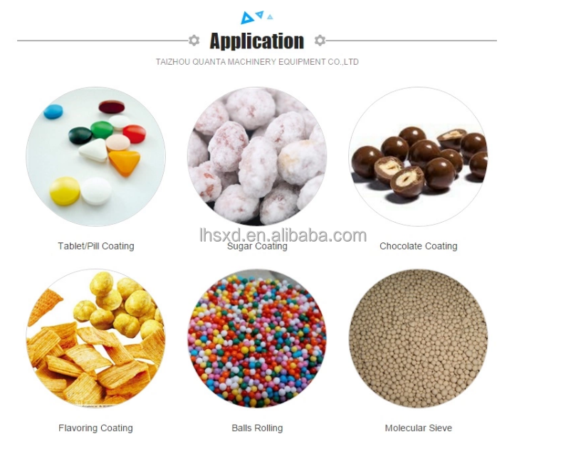 Working principle: When the pot is running smoothly, roll the sugar-coated tablets in the pot, so that the sugar-coated powder is evenly distributed on all the medicines. Comes with an electric heater. The air outlet pipe extends into the ball for heating. At the same time, a blower blows hot air into the inner layer of the pot to remove the moisture on the surface of the tablet, thereby obtaining a hard sugar-coated tablet.