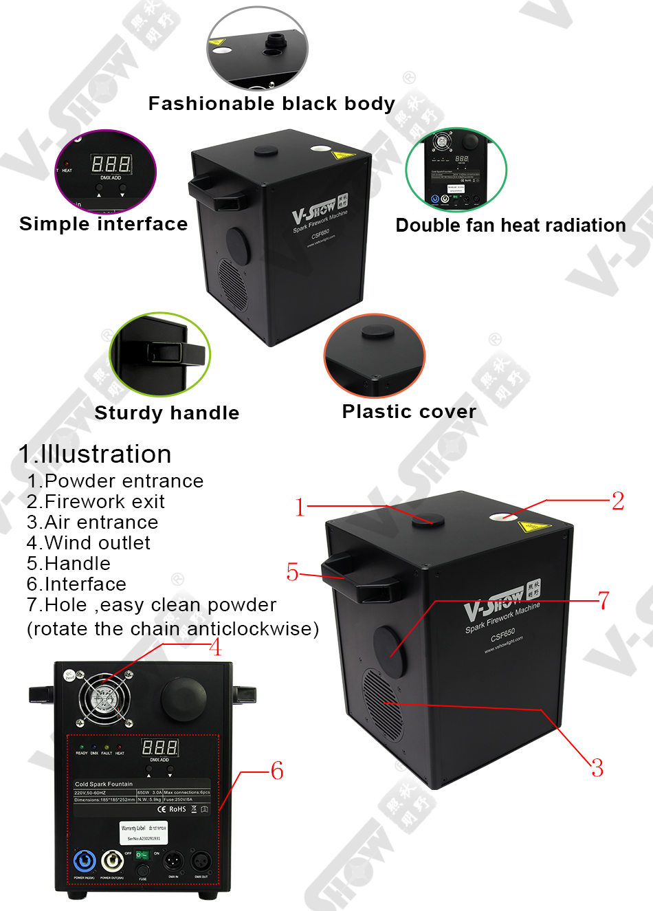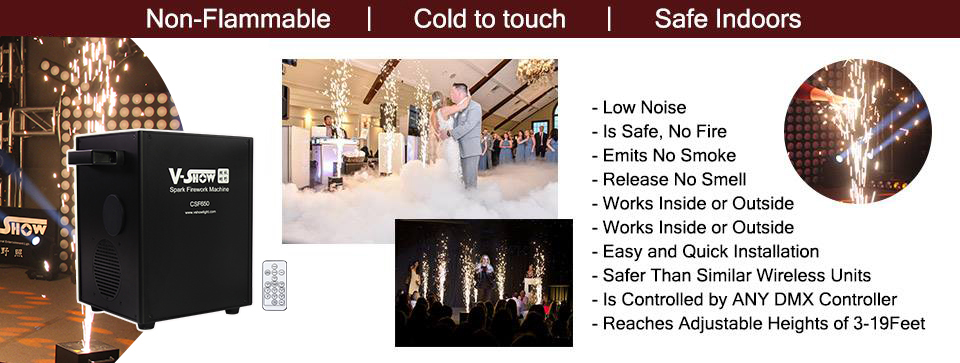 This is a new generation of smokeless and fireless DMX controlled fireworks machine using special powder.