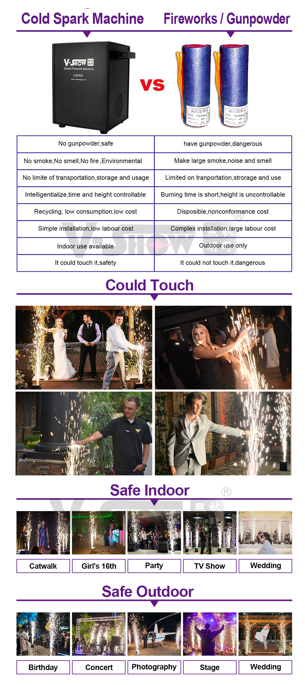 The spark machine is safe, environmentally friendly and easy to transport. This is new technology