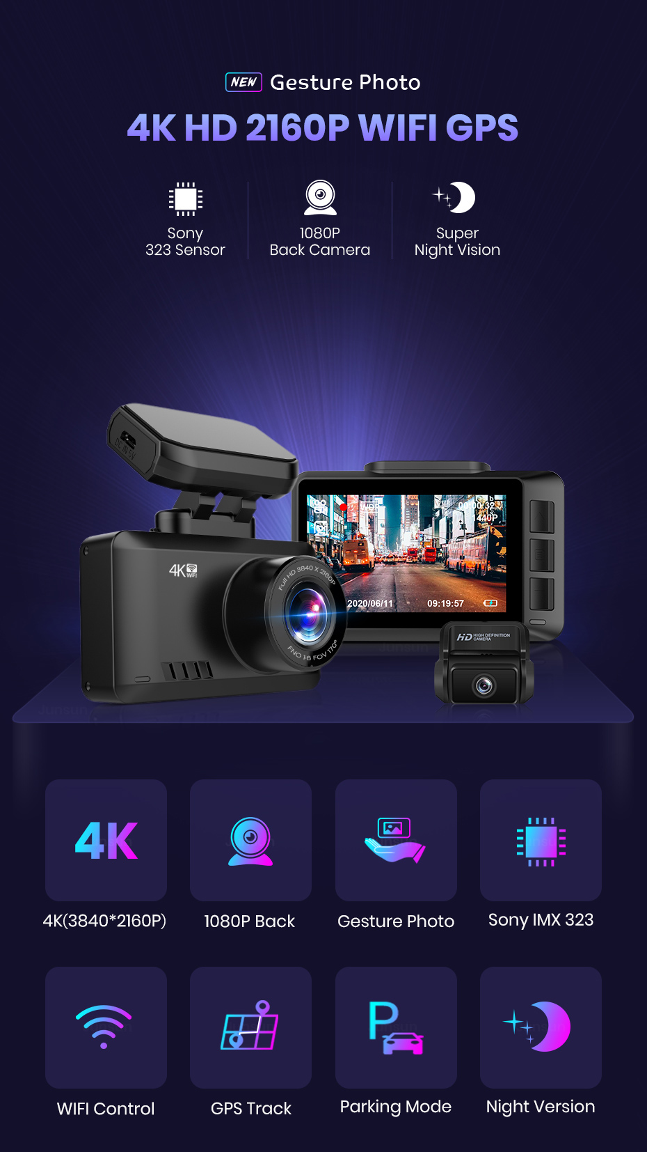 product name | 4K Dash Cam Gesture Photo WiFi 2.4" Car Camera Dashcam 3840*2160P 30FPS Ultra HD DVR Video Recorder GPS Tracker Dashcam for Car |
