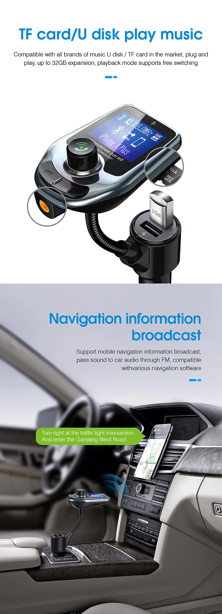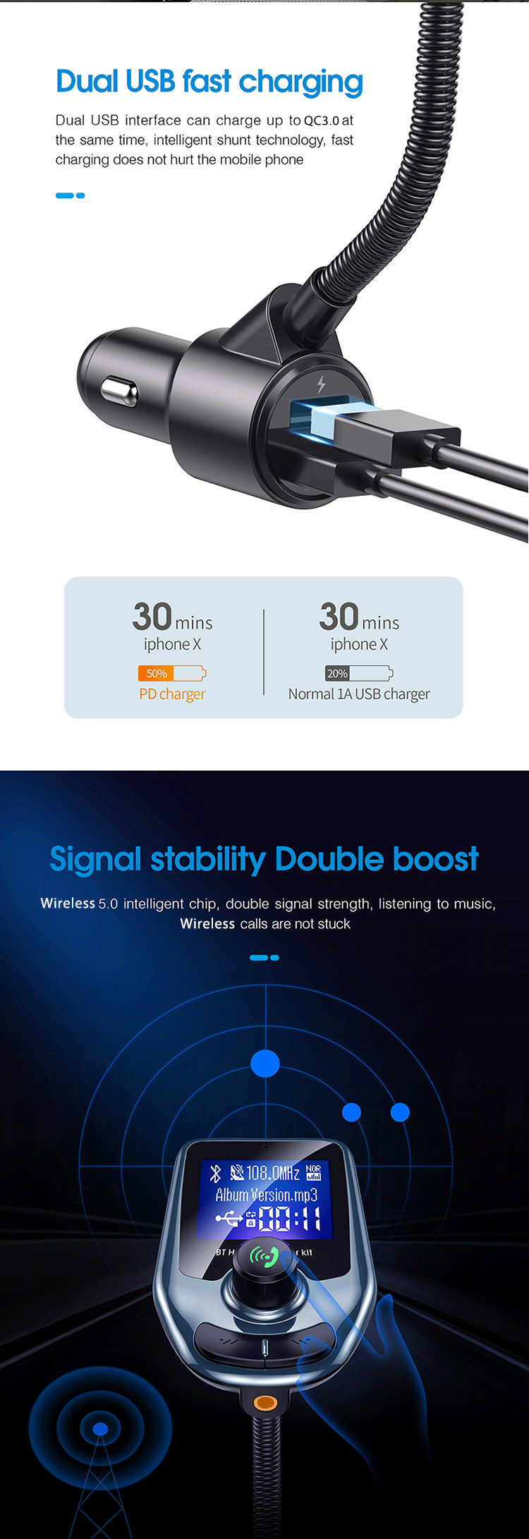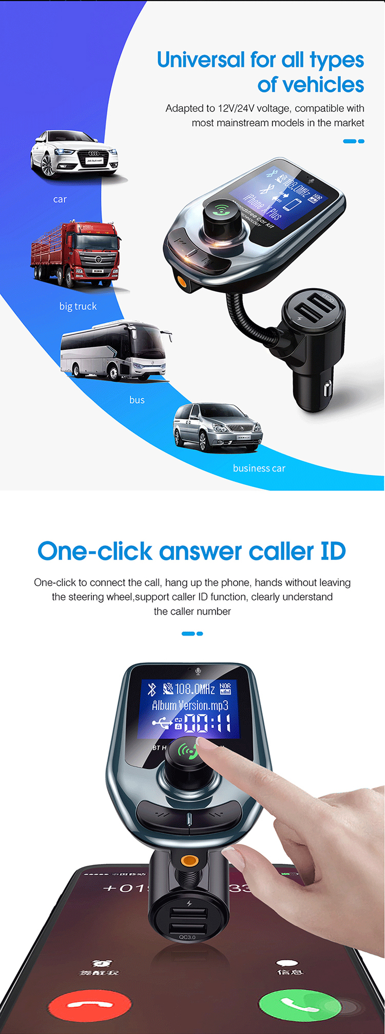 | Transmission distance: | 5-10m | Function: | Bluetooth hands-free calling, car charger, playback, FM transmitter, hands-free, fast charging, screen display, shutdown memory |