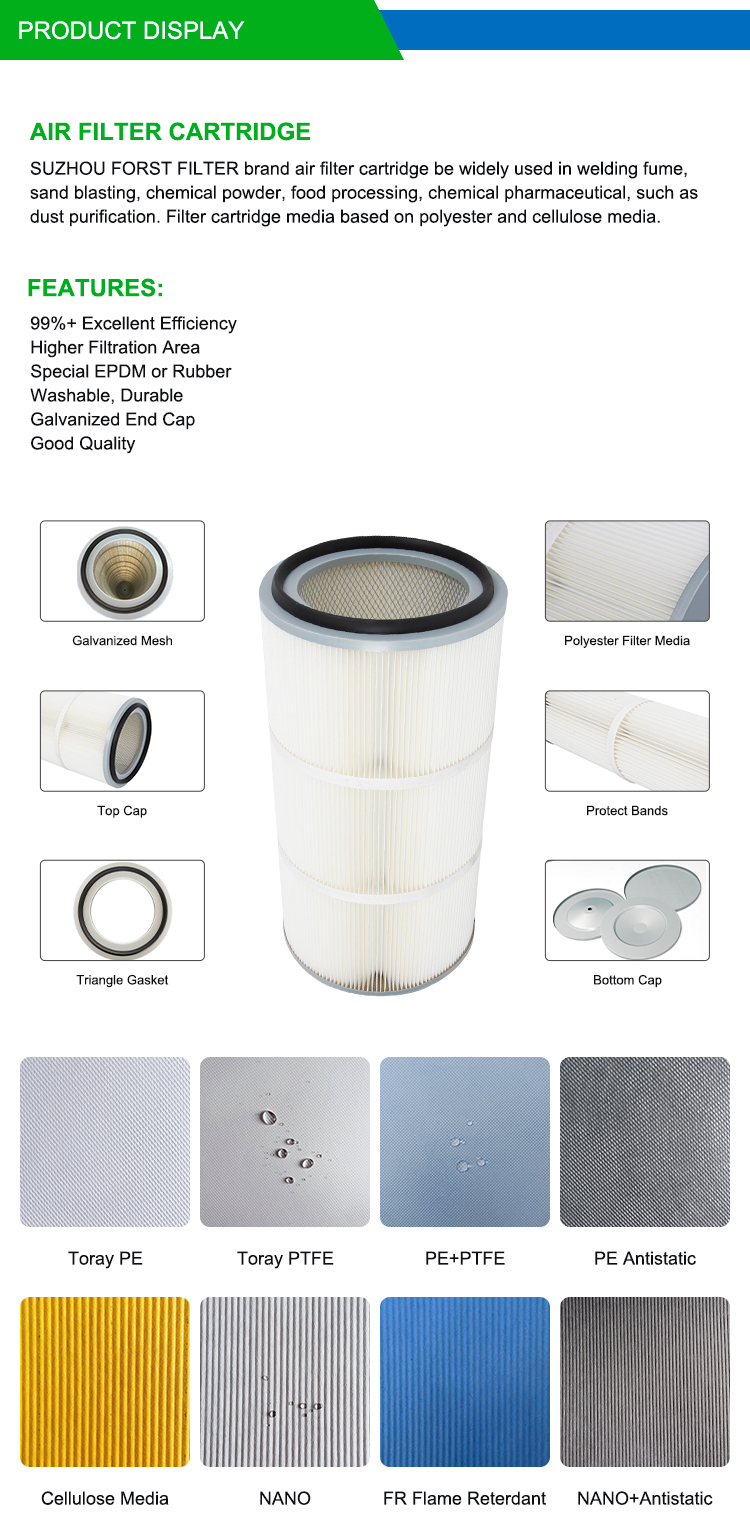 FORST Factory Washable 0.3 Micron Industrial Dust Powder Pleated Air Filter Elements
