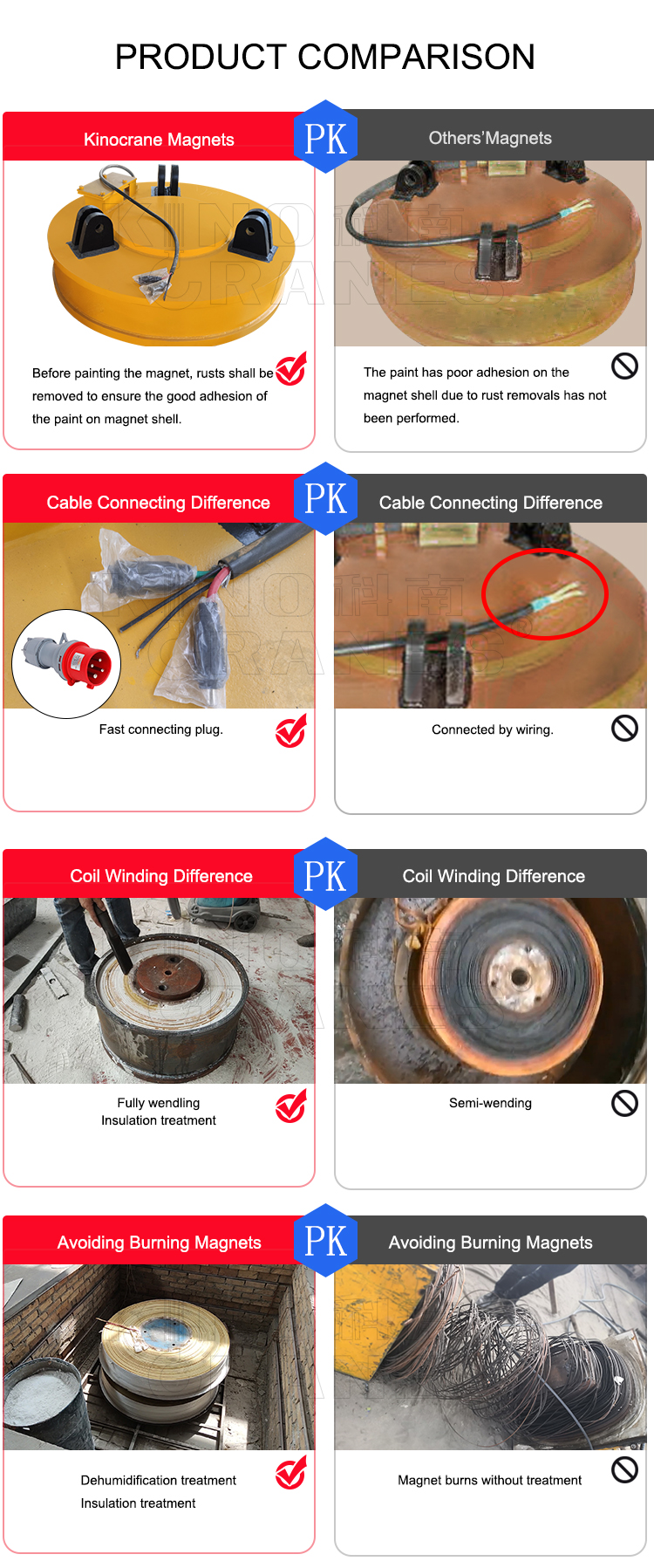 Model | Diameter(mm) | Current (A) | Power (KW) | Lifting capacity (cold/hot state) (kg) | ||||