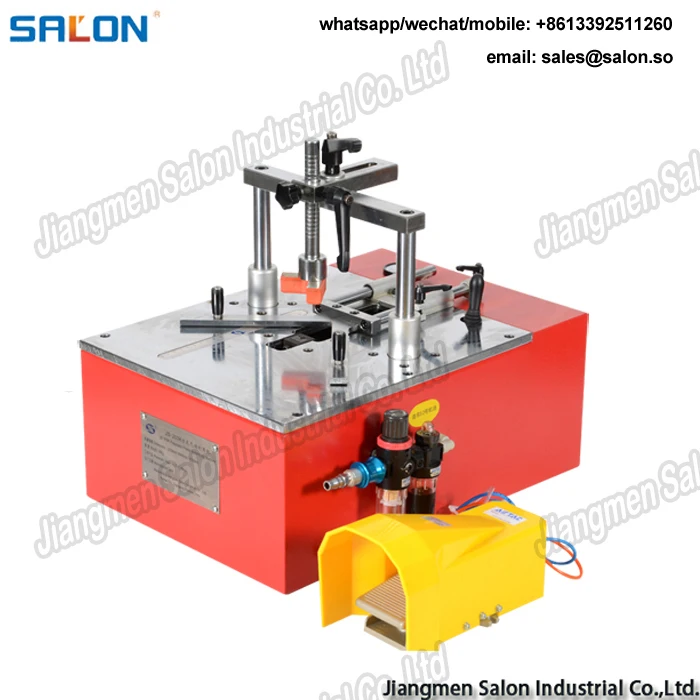 The JS-5212 is a bench-top, frame joining machine and the most popular model of custom frame shops. It is compact, well constructed,and built for many years of trouble free operation. The design of the JS-5212 allows the operator to set the front and back measuring stops for V-Nail insertion. The frame is then moved across the nail head and V-Nails are driven or stacked anywhere along the frame joint. The V-Nail insertion is actuated through the use of a pneumatic pedal.