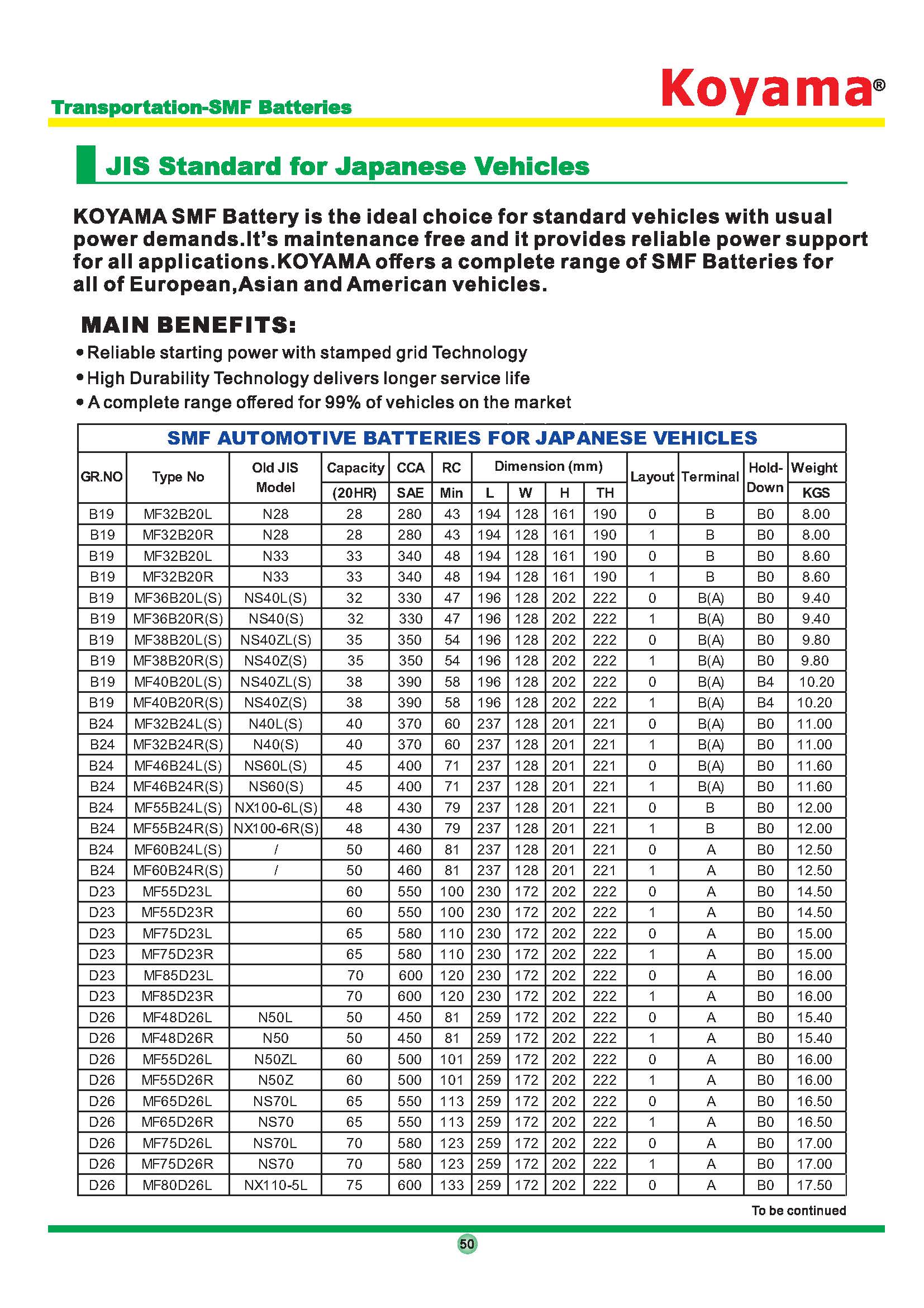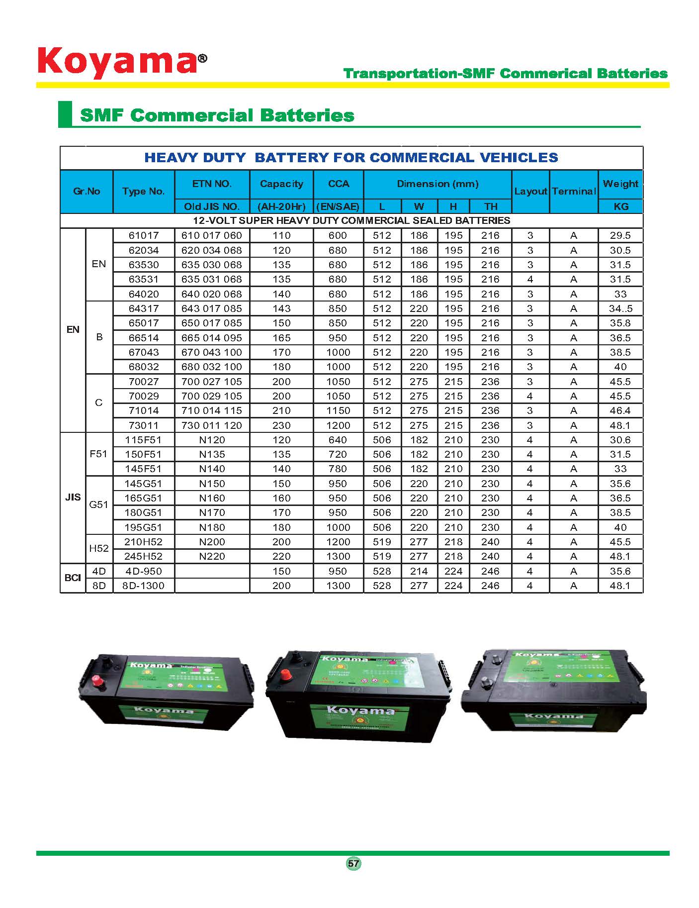 hillManufacture and distribution of boat, truck and car batteries since 2012. All of our products are manufactured using market leading Extended Grid (EXG) technology, which helps KOYAMA become one of the world's leading suppliers of maintenance-free automotive batteries. The KOYAMA Produce series is the most durable product on the market. Whether you're looking for a standard car battery or a professional deep cycle battery, you can't go wrong with our warranty products. Thanks to EXG technology, our truck and car batteries can withstand the harshest work, weather and road conditions. Units are available for any model, so you're sure to find the best performance-enhancing solution for your vehicle.