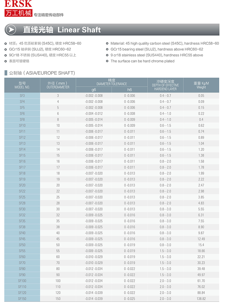 | SUJ2 (GCr15) Steel Linear Shaft Dimensions: |