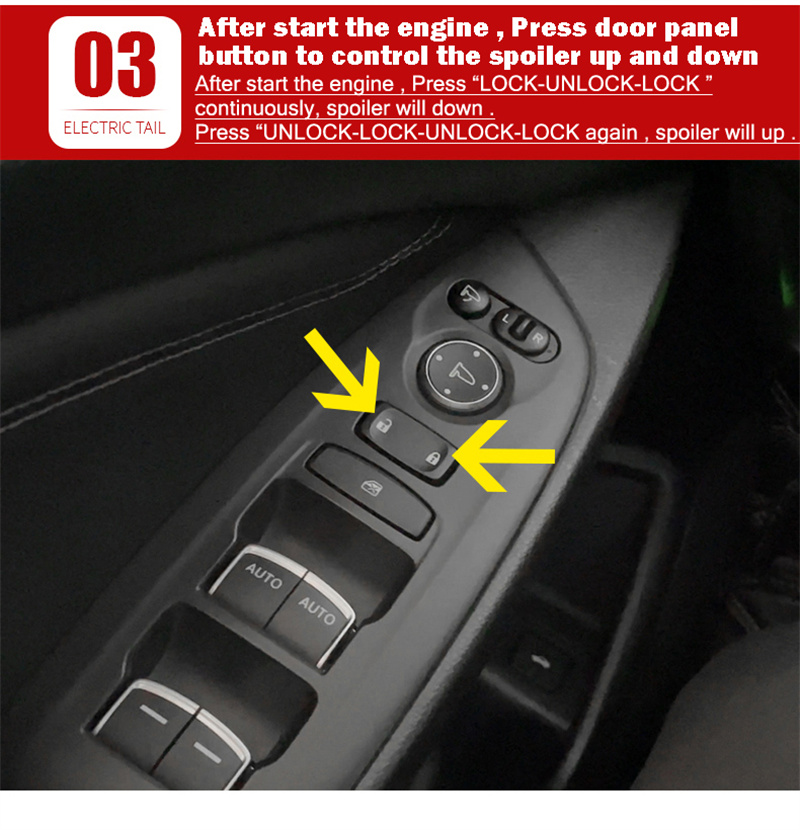 3: The car button lifts the spoiler (press the "UNLOCK-LOCK-UNLOCK-LOCK" spoiler to automatically lift, press the "-LOCK-UNLOCK-LOCK" spoiler to automatically lower)