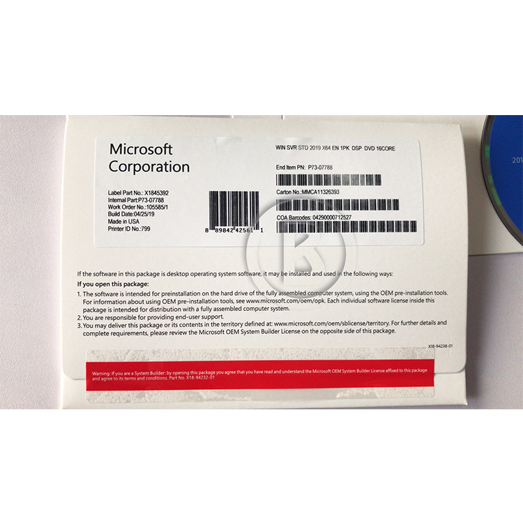 | Single package size: | 55X55X65 cm | product name: | Windows Server 2019 Standard Edition DVD |