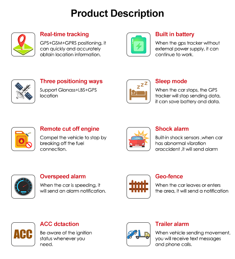 | use: | Motorcycles, cars, vehicles, fleet management | special function: | ACC detection, oil cut, real-time tracking |