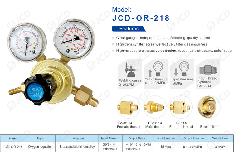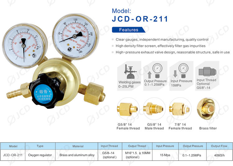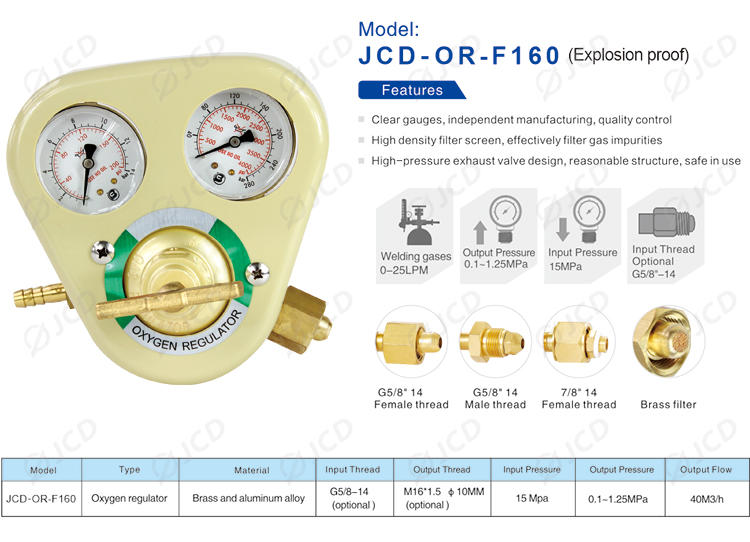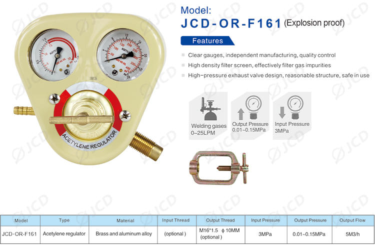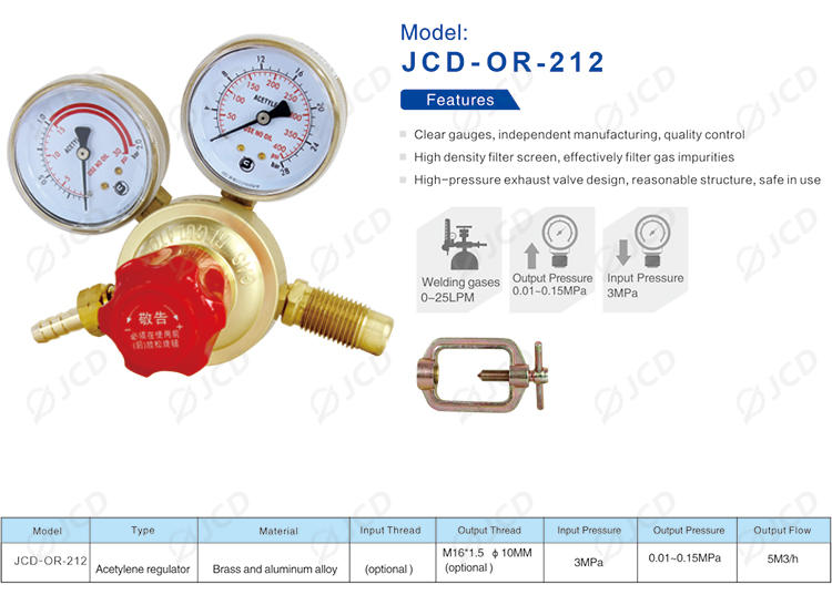 JCD Argon Oxyacetylene Regulator Reducer MiG Flowmeter Pressure Gas Torch Cutting