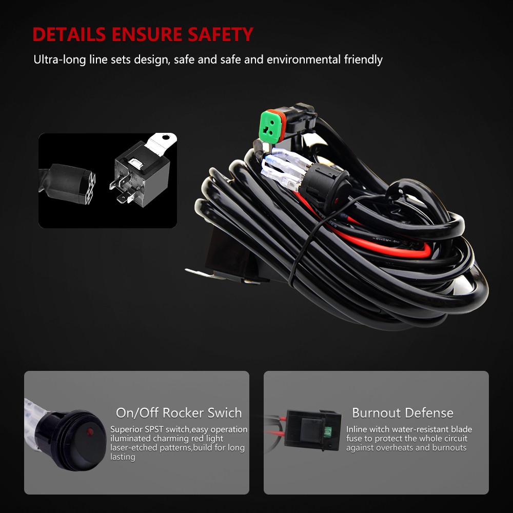 | port: | Shanghai Ningbo Guangzhou | Packaging Details: | One control one LED work light DT connector off-road vehicle Led light bar wiring harness |