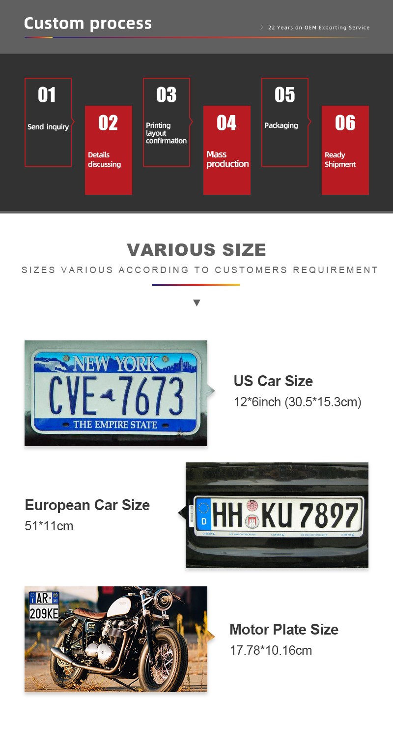 | Supply capacity: | 3000000 pieces/month | product name: | Customized Sign Plate Blank Reflective Embossed License Plate |