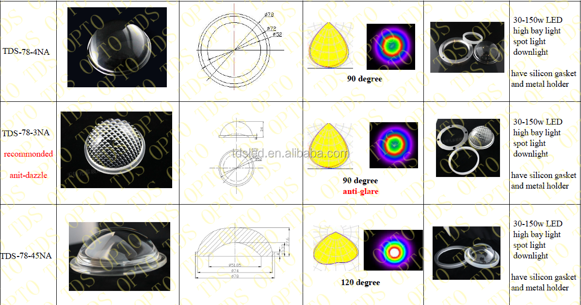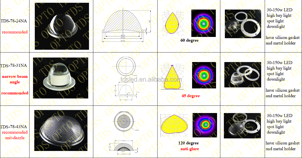 | structure: | Plano-convex | application: | 3-200W for all indoor/outdoor lights |