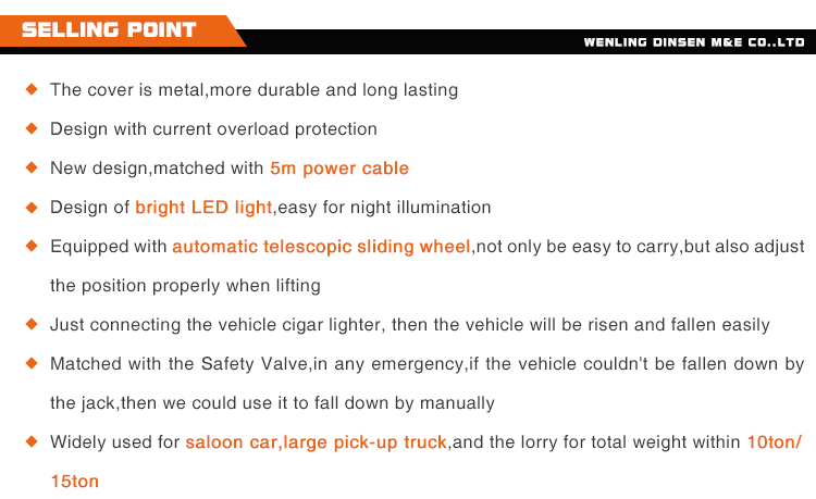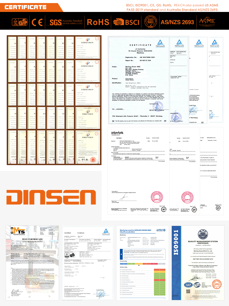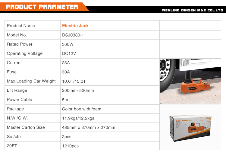 Located in the coastal city of Wenling, Zhejiang,Wenling Dingsen Electromechanical Co., Ltd.Founded in 2012, independent research and development, production and salesHigh-tech automotive emergency products such as electric jacks, air pumps, and electric wrenches, of which more than30 patented technologies; we have more thanR&D team of 15 people, to provide customers with professional design and customized technical services. At the same time, we have obtained the following certificationsBSCI, ISO9001, CE, GS, RoHS, REACH, also passedAmerican ASME PASE-2019 standardandAustralian Standard AS/NZS 2693.