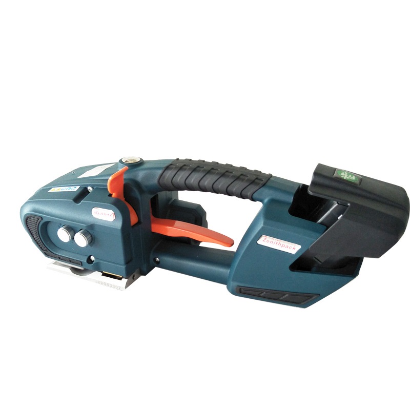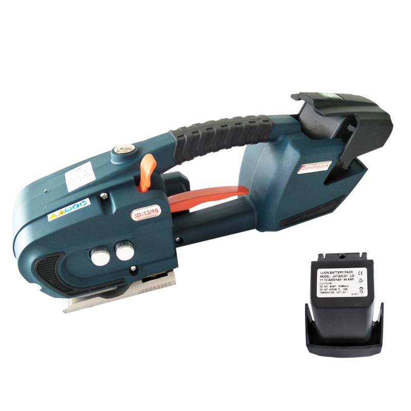 The handheld battery powered plastic strapping machine is a fully automatic tool for PET or PP strapping. The handheld battery powered plastic strapping machine can directly combine old and new belts, saving wearing time and effort. Suitable for packaging of steel, wood, bricks, fibers, etc. Advantages: a) Reduce the packaging cost by more than 15%, and increase the bonding strength by about 2 times b) Improve packaging without metal buckle c) Have low power and finishing alarm device; d) Work normally in harsh environments such as a lot of dust and fine fibers