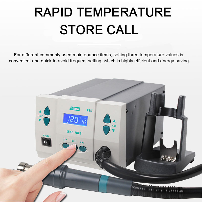 ----861DW hot air rework station is new lead-free rework station, 861DW mobile phone BGA desoldering repair rework station, 1000W/500°C genuine original hot air rework station, with CH1, CH2, CH3 three working channels