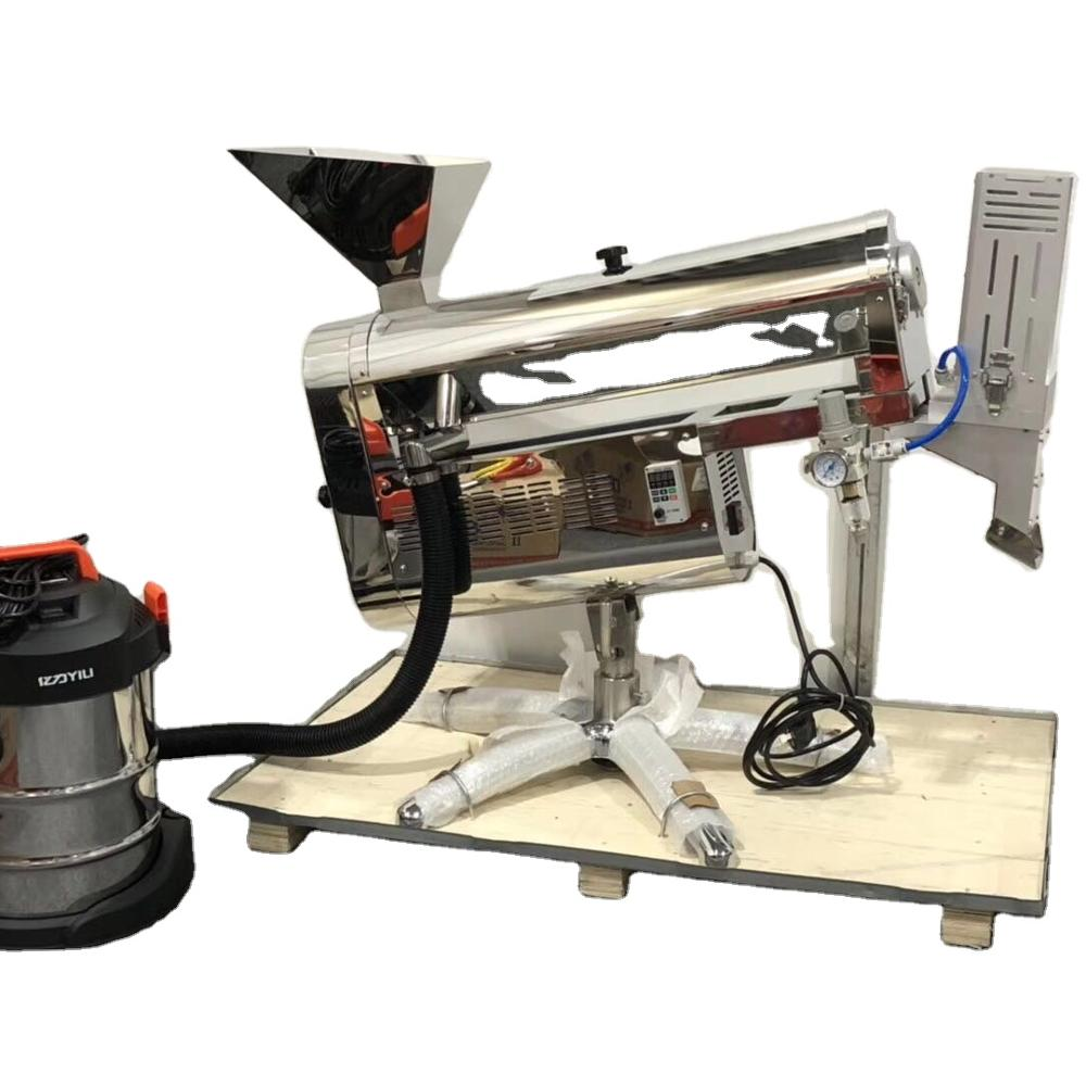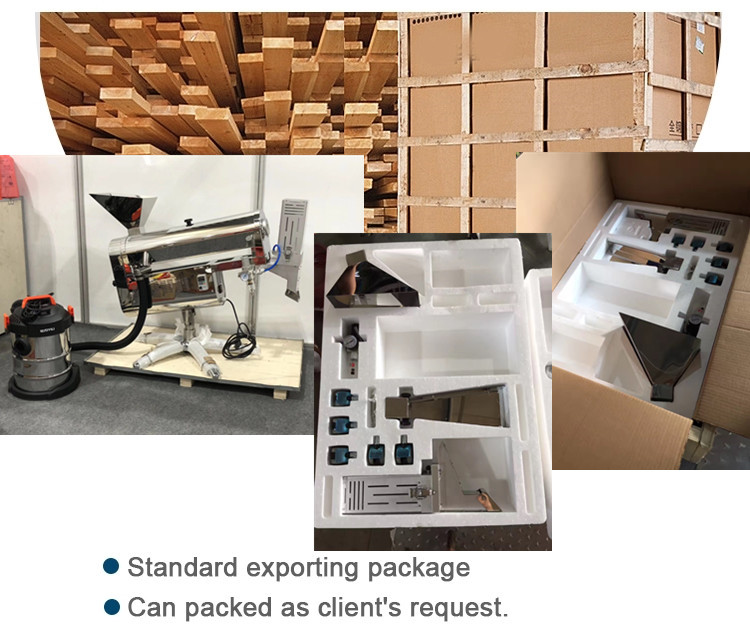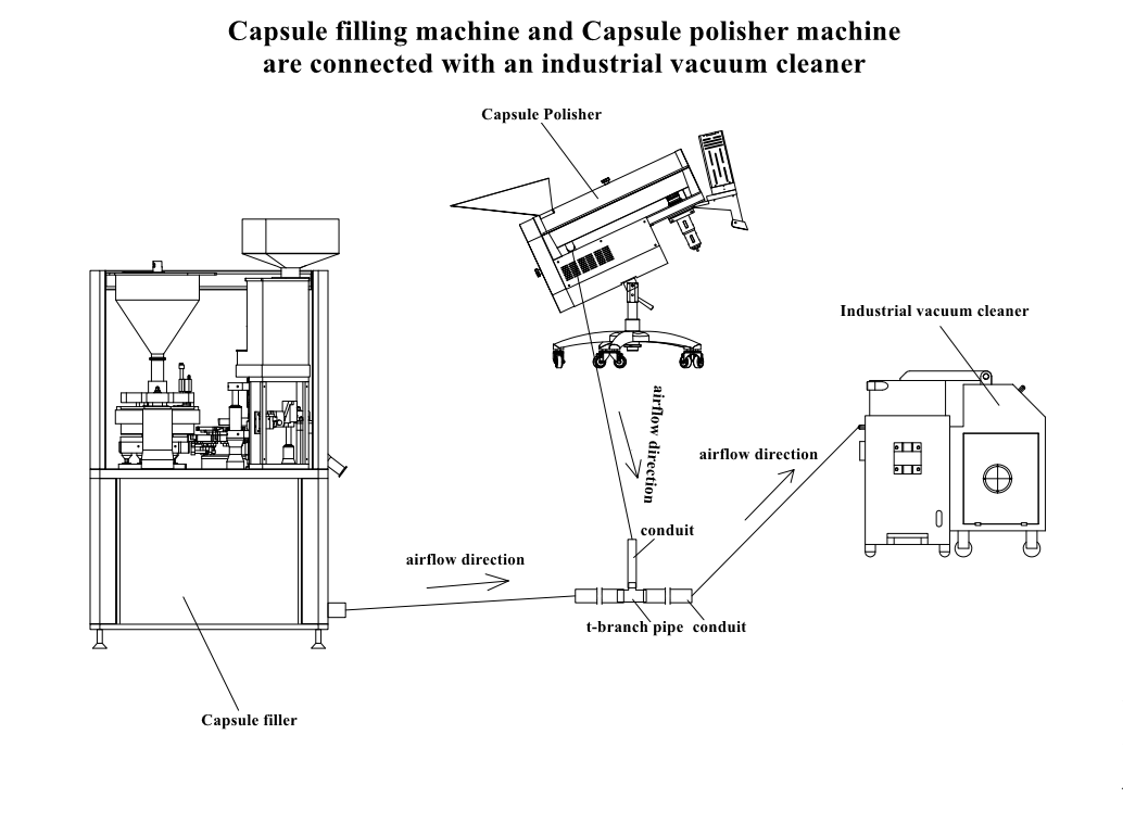 Height and angle can be adjusted to fit any chute of capsule filling machines and tablet presses for polishing the product immediately after production.