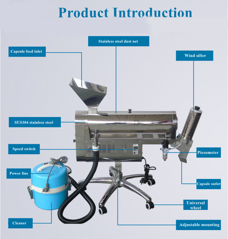 Eliminates static electricity; and automatically rejects ultra-light capsules, fragments and empty capsules.