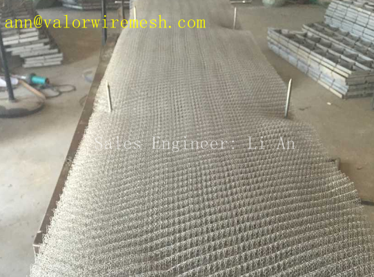 Third, our workers make 2205 mesh pads with multiple layers of crimped knitted wire mesh and connect it with meshes on the upper and lower sides. A demister is now complete. As an inspection process, the entire demister will be pre-bonded prior to packaging.